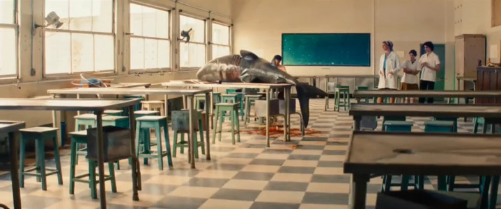 比如那个贯穿全片的诡异情节:鲨鱼腹中的人腿。