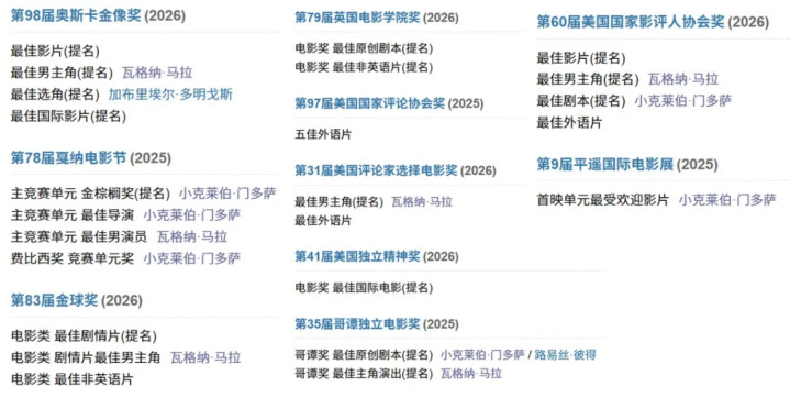 一口气拿下最佳影片、最佳国际影片、最佳男主角在内的四项重磅提名。